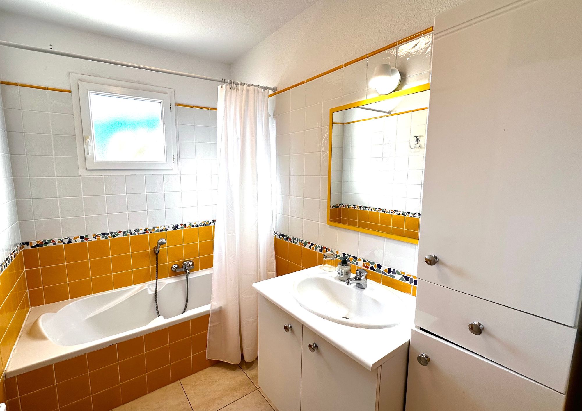 Situé au premier étage de la villa, vous pourrez profiter de 2 terrasses, une pour le petit déjeuner et une pour le diner, une place de parking dans l’enceinte de la villa . une entrée privative vous permet d’accéder à l’appartement.