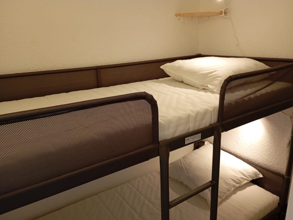 L’appartement est composée d’une chambre parentale offre un lit double de 160 cm et de généreux espaces de rangement, créant un véritable cocon de tranquillité. Une seconde chambre, pensée comme une cabine accueillante, est dotée de lits superposés qui feront le bonheur des enfants, ajoutant une touche de douceur et de complicité au séjour.