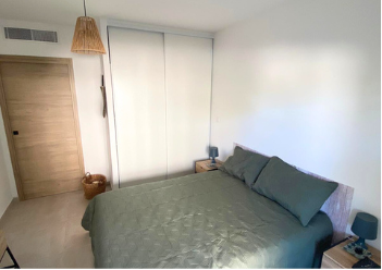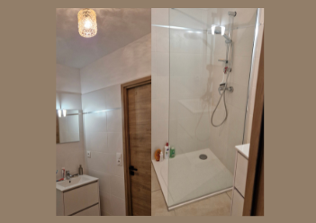 L’appartement s’ouvre sur une chambre accueillante équipée d’un lit de 140 cm, ainsi qu’une pièce de vie moderne dotée d’un canapé pourvu d’un véritable matelas garantissant un confort optimal. Cet espace lumineux donne accès à une terrasse privative, idéale pour savourer un petit-déjeuner en plein air ou profiter de la douceur des soirées d’été. La salle de douche, aux lignes contemporaines, complète l’ensemble avec tout le confort nécessaire.